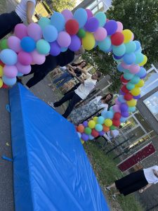 Danach wurde ausgiebig gefeiert: Mit Schminkstand, Foto-Ecke, Hüpfburg und frisch gegrillten Würstchen war für jeden etwas dabei. Ein besonders emotionaler Moment war das Vorlesen der persönlichen Abschiedsbriefe für jedes einzelne Kind. Den krönenden Abschluss bildete dann der traditionelle „Rauswurf“, begleitet von viel Lachen und Applaus.