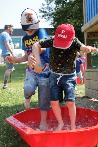 Es gab Glitzertattoos, eine große Seifenblasen-Party und ein gemeinsames Kunstwerk, bei dem ein Bild aus vielen bunten Handabdrücken entstand. In der Turnhalle wurde es rasant, bei spannenden Bobbycar – Rennen konnten Groß und Klein ihr Tempo unter Beweis stellen. Draußen im Sandkasten ging es beim Tauziehen darum, wer die meiste Kraft hat – ein Riesenspaß für alle Beteiligten!