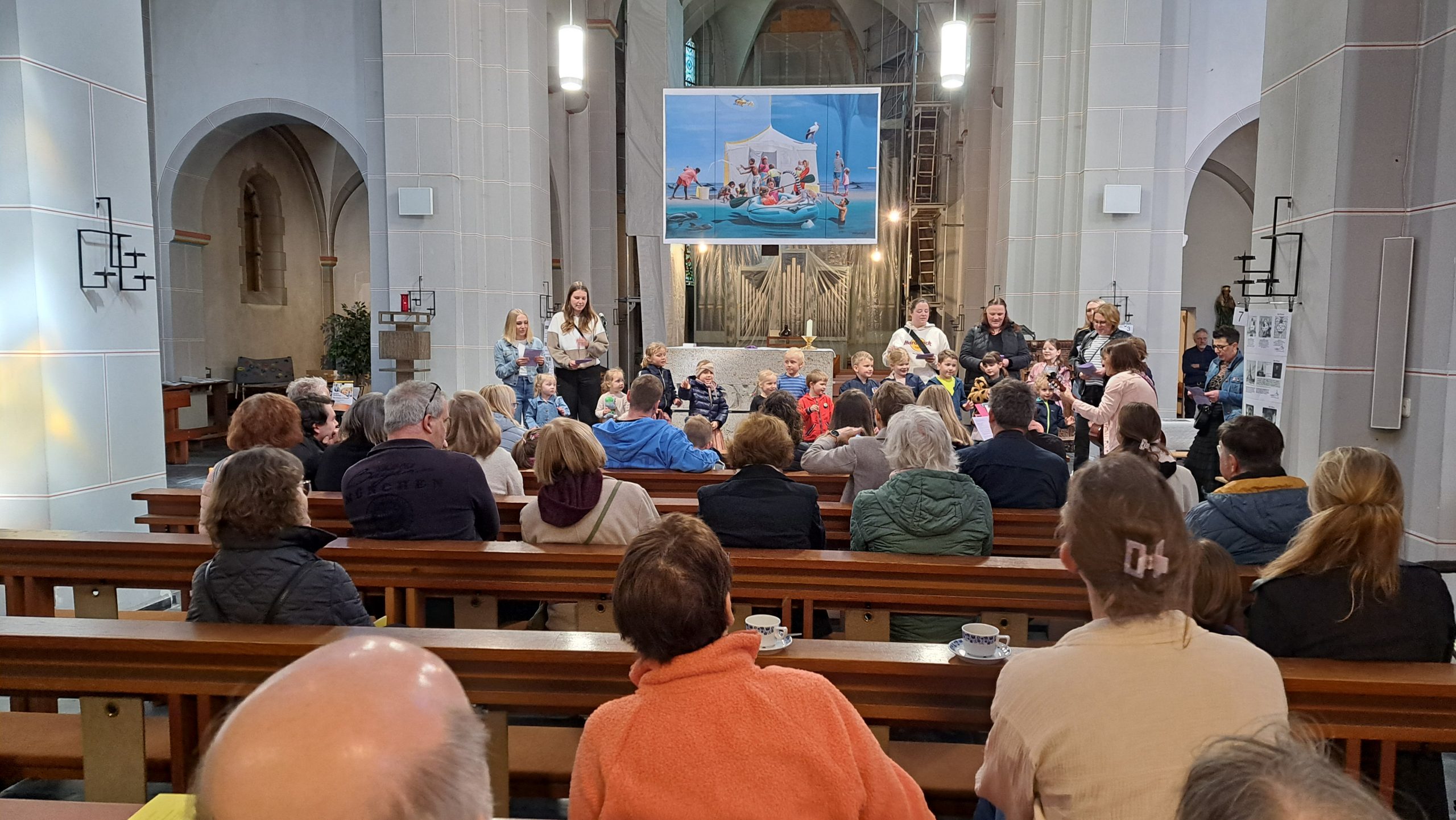 Nach der Eröffnung und Begrüßungsreden durch Pfarrer Theo Kröll und Bürgermeister Stefan Reinders machte der Kindergarten St. Markus mit einer großartigen Gesangsdarbietung den Auftakt in diesen Tag der offenen Kirche.