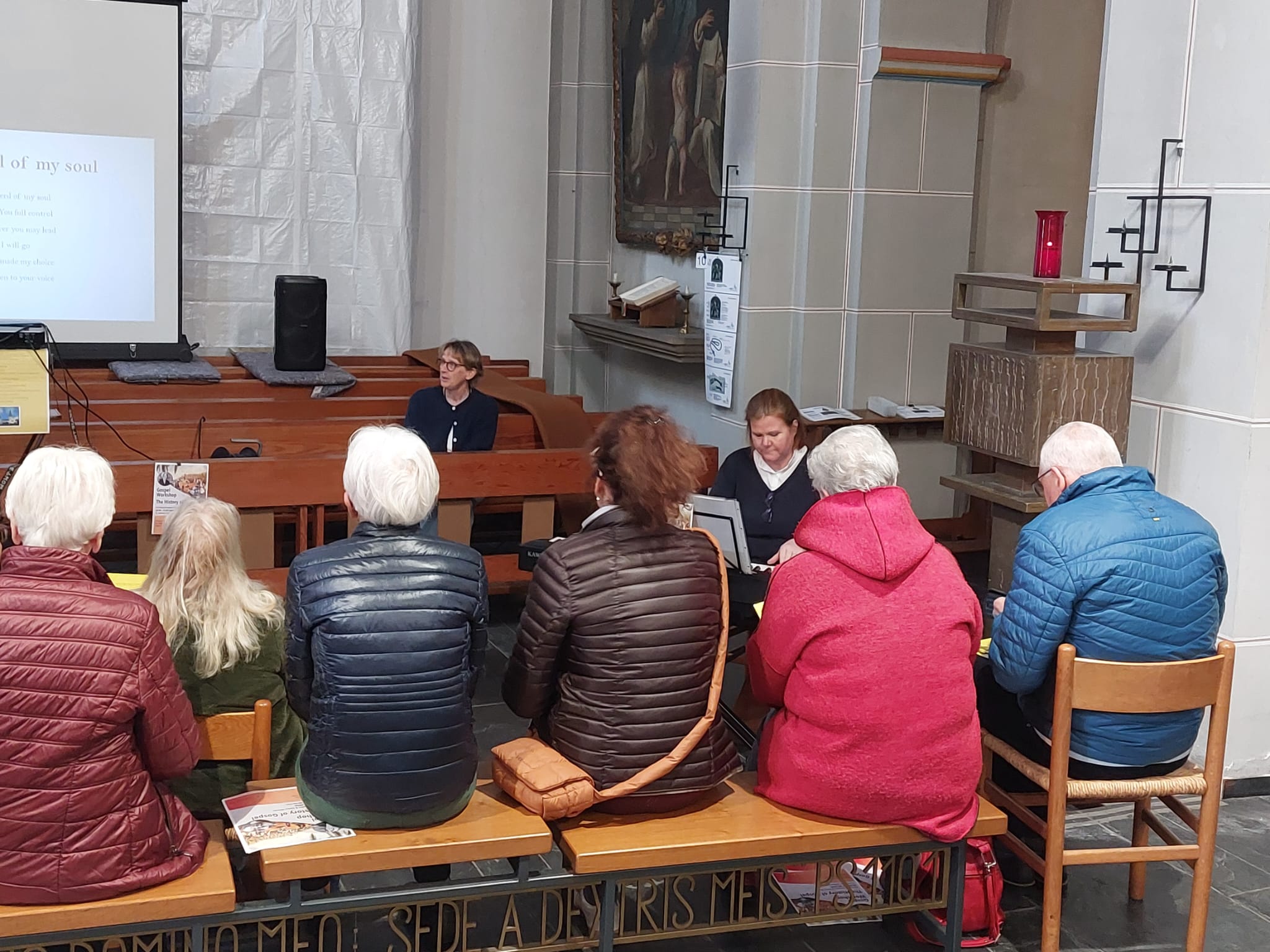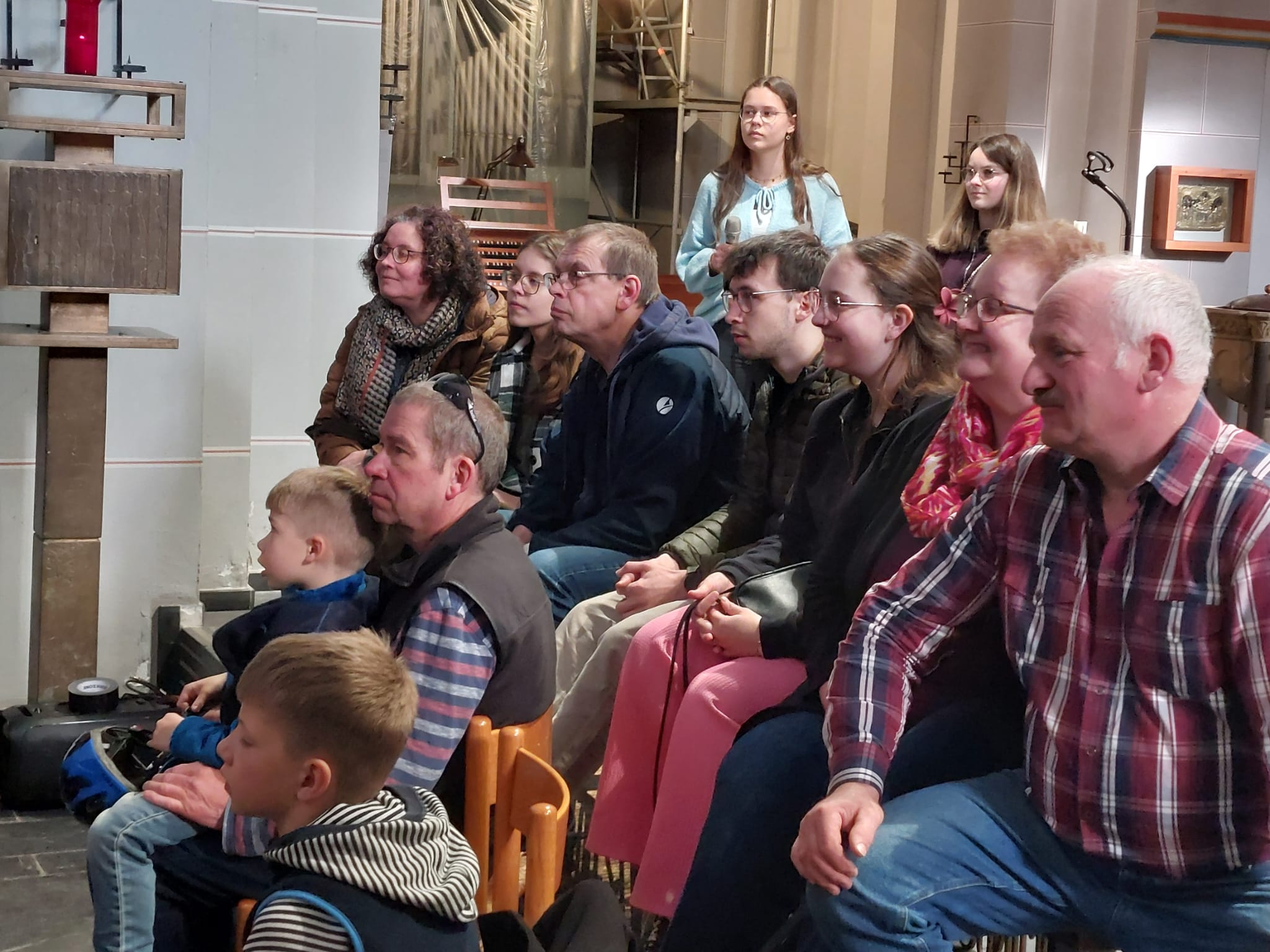 Die Besucher hatten die Chance die St. Markus Kirche einmal von einer anderen Seite kennen zu lernen. Es gab ein Café in der Kirche, welches zum Verweilen bei Kaffee und Kuchen einlud. Wegen des Sonnenscheins wurde es kurzfristig nach draußen erweitert. An einer Fotowand konnte man historische Bilder und Ansichten der Kirche aber auch der früheren Mitarbeitenden bestaunen, besonders die Bilder von Schwester Änne riefen bei den älteren Besuchern viele Erinnerungen hervor. Die Besucher durften sich selbst an der Orgel ausprobieren und beim „Sing together“ mal nicht-kirchliche Lieder singen. Der Literaturkurs des Jan-Joest Gymnasiums bereicherte das Angebot durch eine filmische Darstellung von Gedichten. Außerdem konnte man seine Lieblingsstelle entdecken, z.B. in der Sakristei, in der die Priester-Gewänder zu bestaunen waren. Während zweier Führungen wurde die aktuelle Baustelle erklärt, aber auch in die Schätze und Geheimnisse der St. Markus Kirche eingeweiht. Nach dieser Entdeckungstour konnte man den Klängen der Breil-Orgel bei einem beeindruckenden Konzert lauschen. Das Finale war schließlich ein Glocken-Geläut, bei dem die einzelnen Glocken mit Namen, Alter und Gewicht vorgestellt wurden, ein Erlebnis der besonderen Art. Der Förderverein kann sehr zufrieden sein mit dieser gelungenen Auftaktveranstaltung, weitere Aktionen sind schon in Planung. Bleibt die Hoffnung, dass viele Besucher dem Aufruf folgen, nun selbst auch Mitglied in diesem Förderverein zu werden.